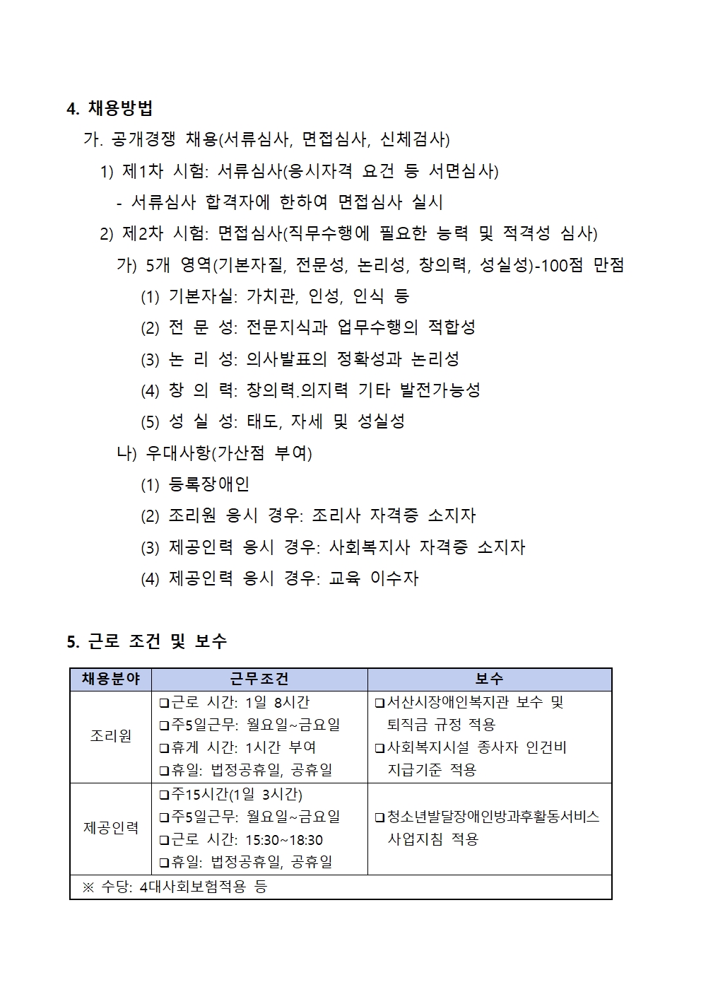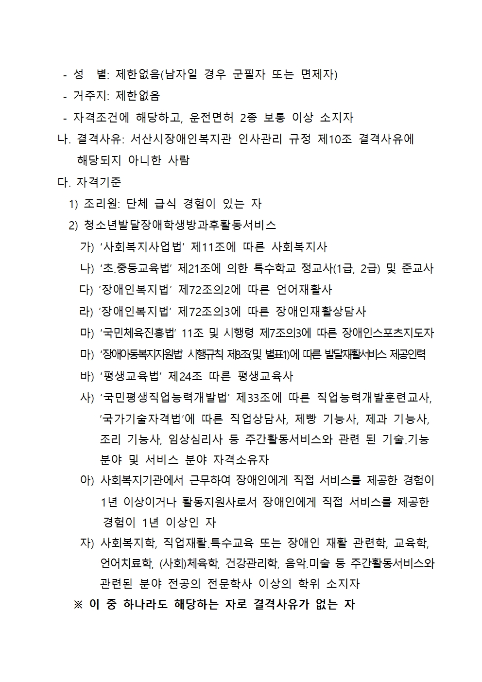 [직원채용] 서산시장애인복지관 계약직 직원 채용 공고