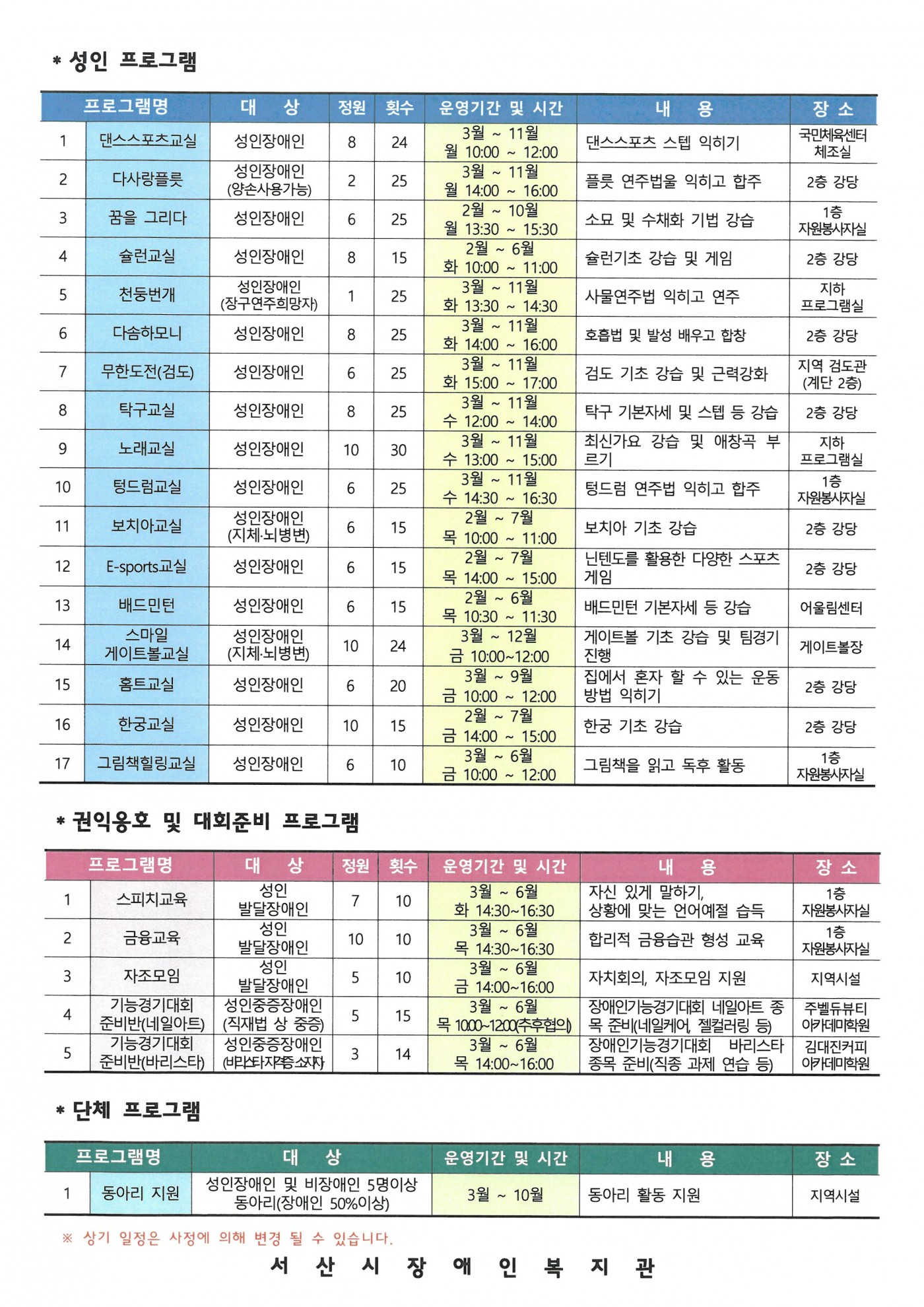 - 문 의: 서산시장애인복지관(☏041-668-4744/ 4844)