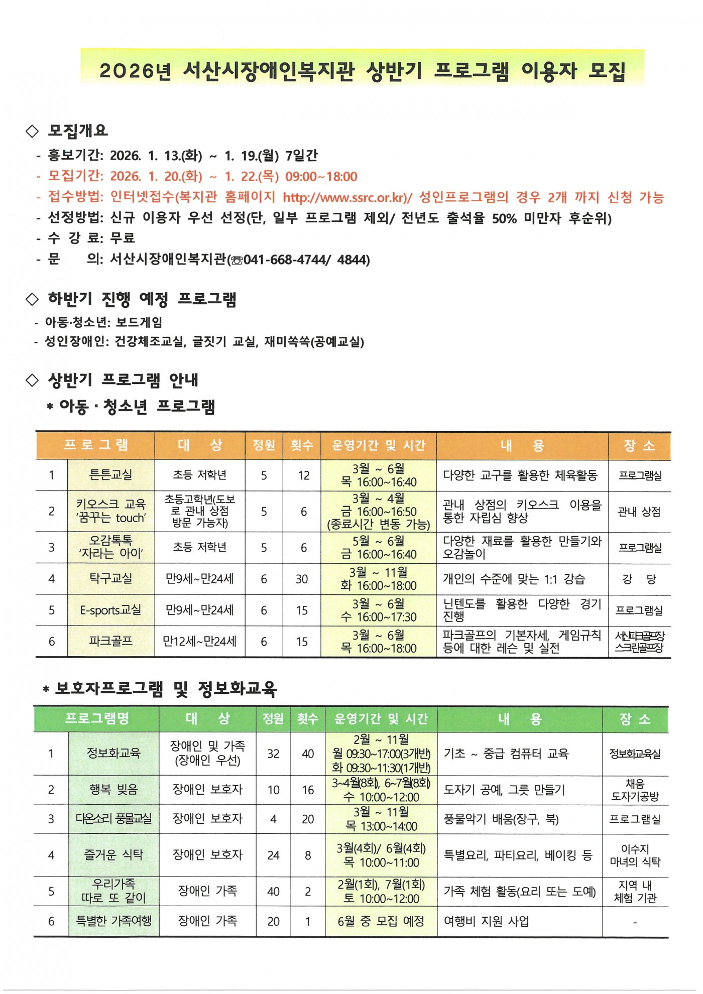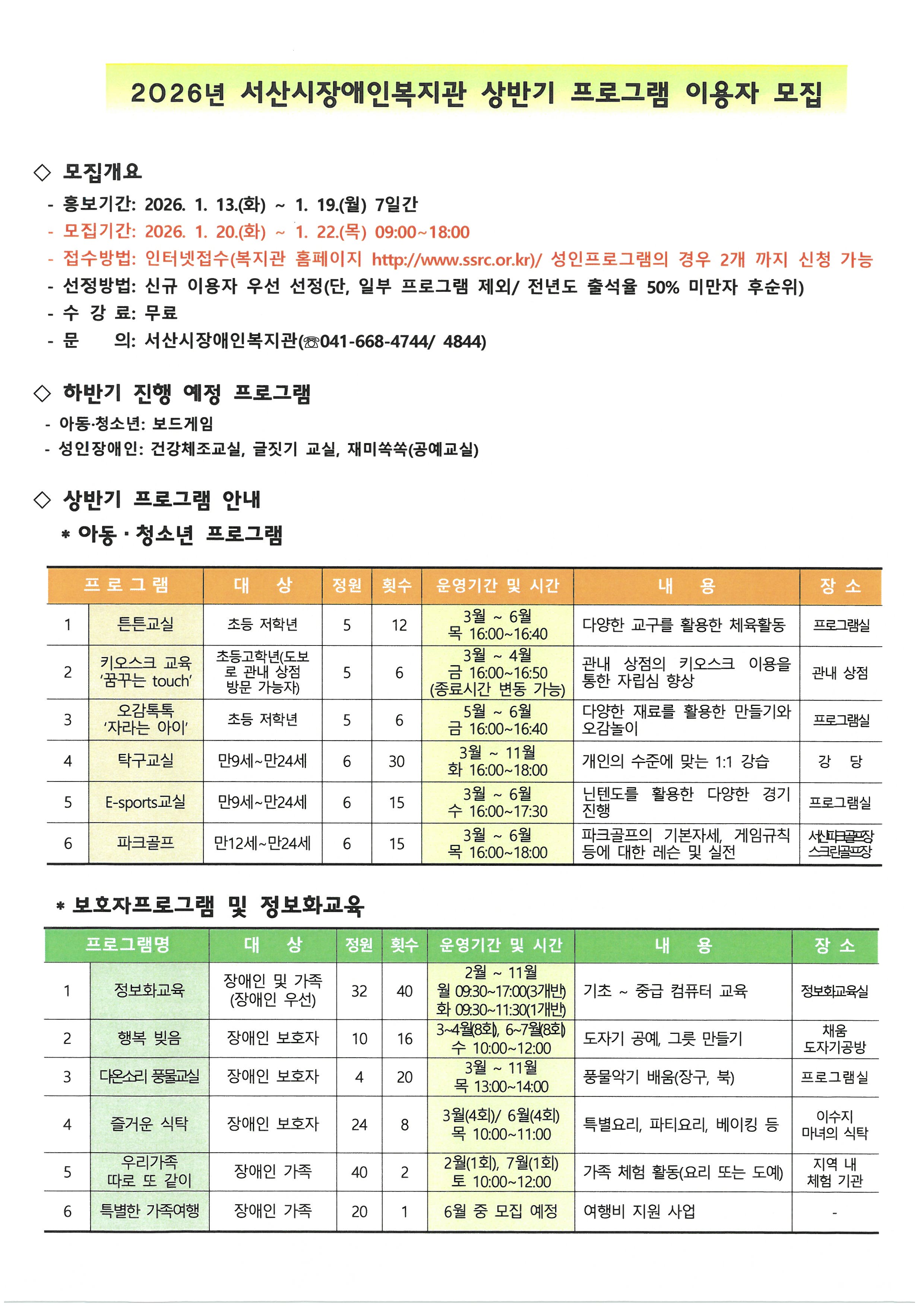2026년도 상반기 프로그램 이용자를 모집합니다.