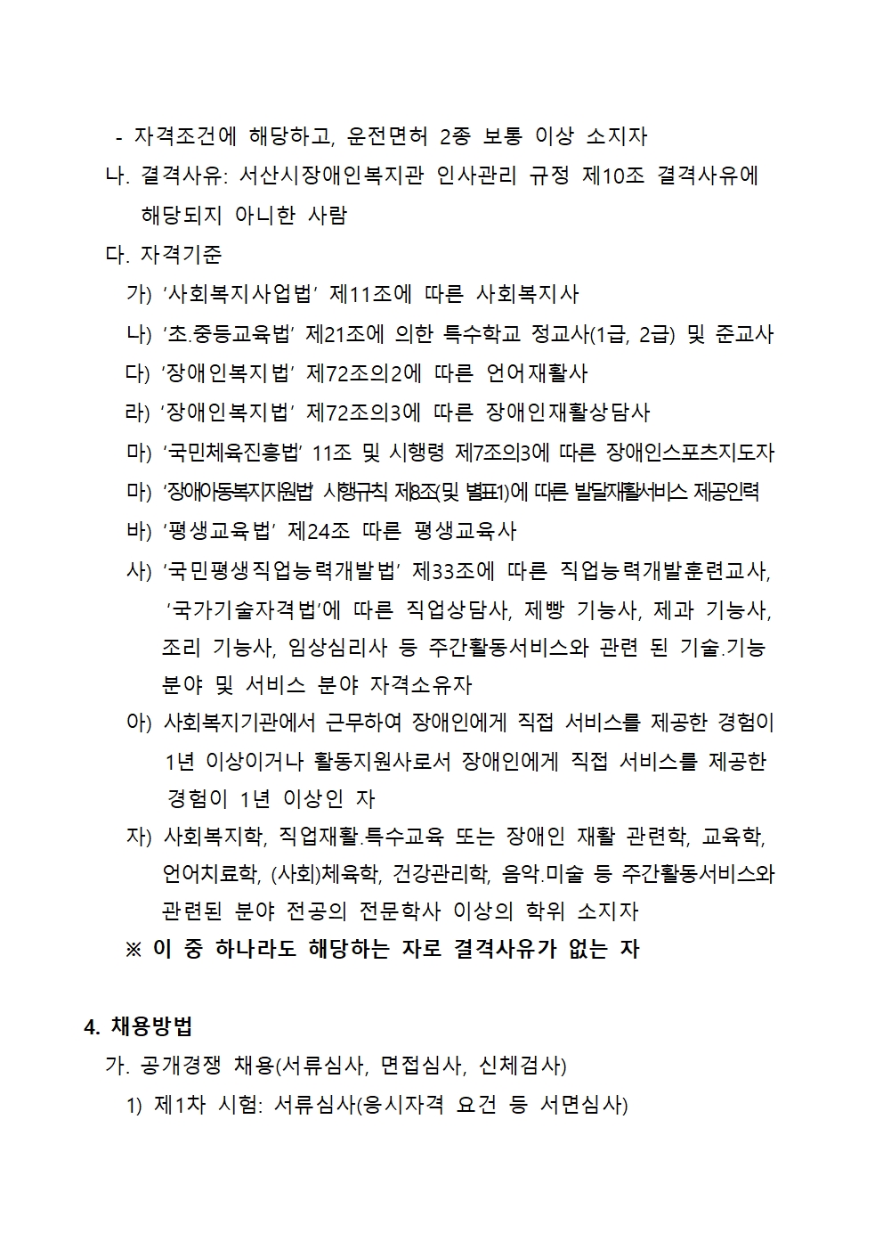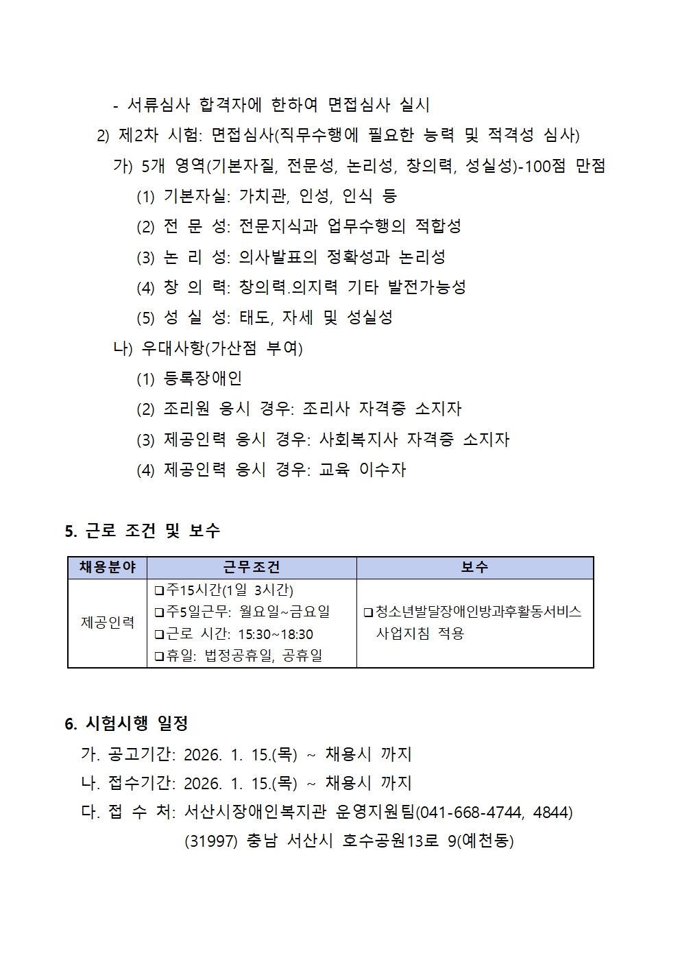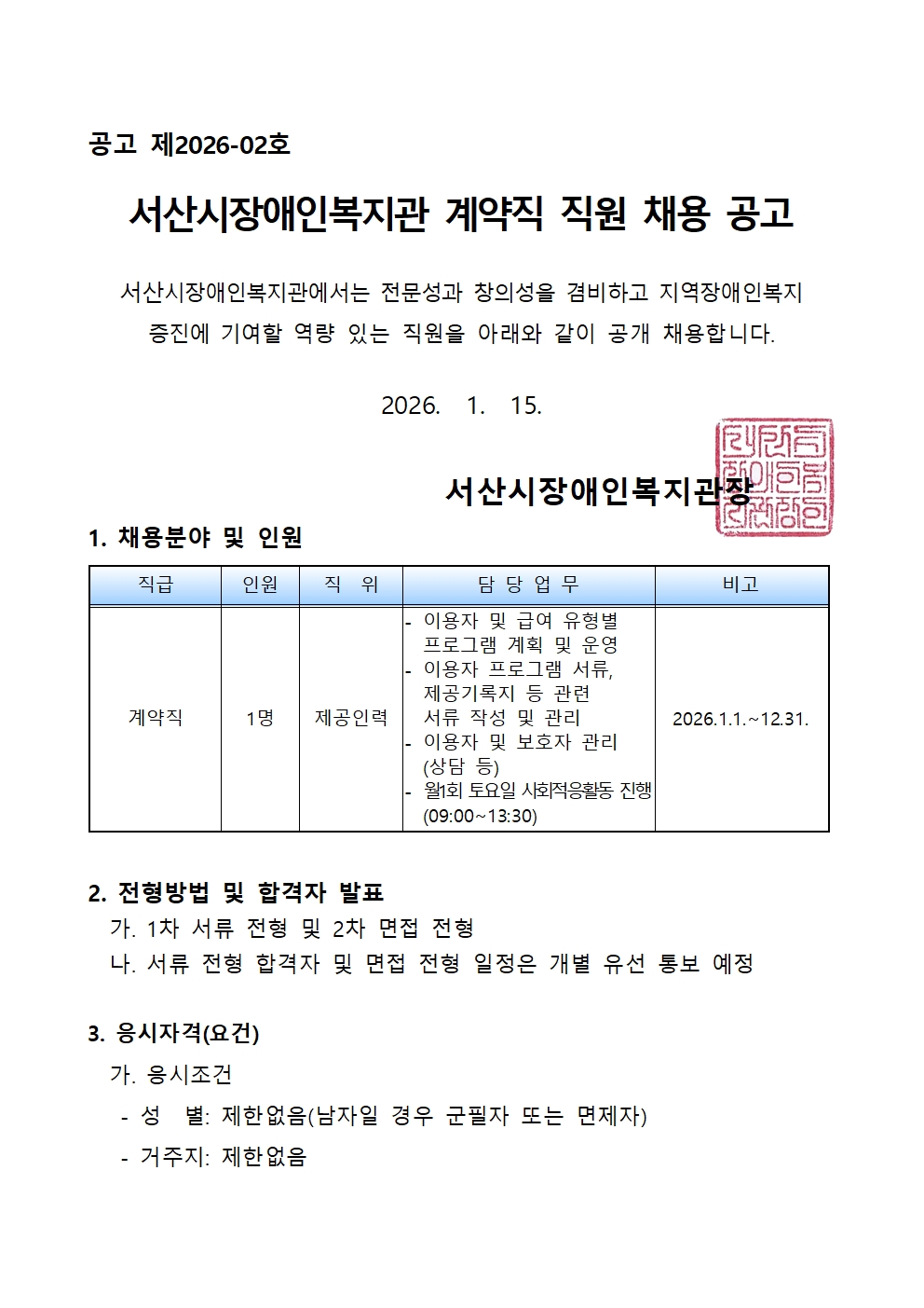 [직원채용] 서산시장애인복지관 계약직 직원 채용 공고