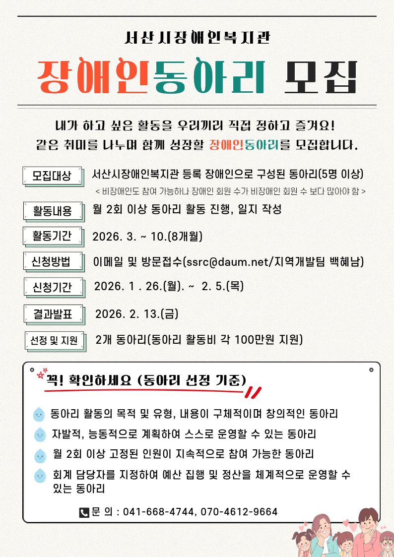 2026년 장애인동아리 모집 안내