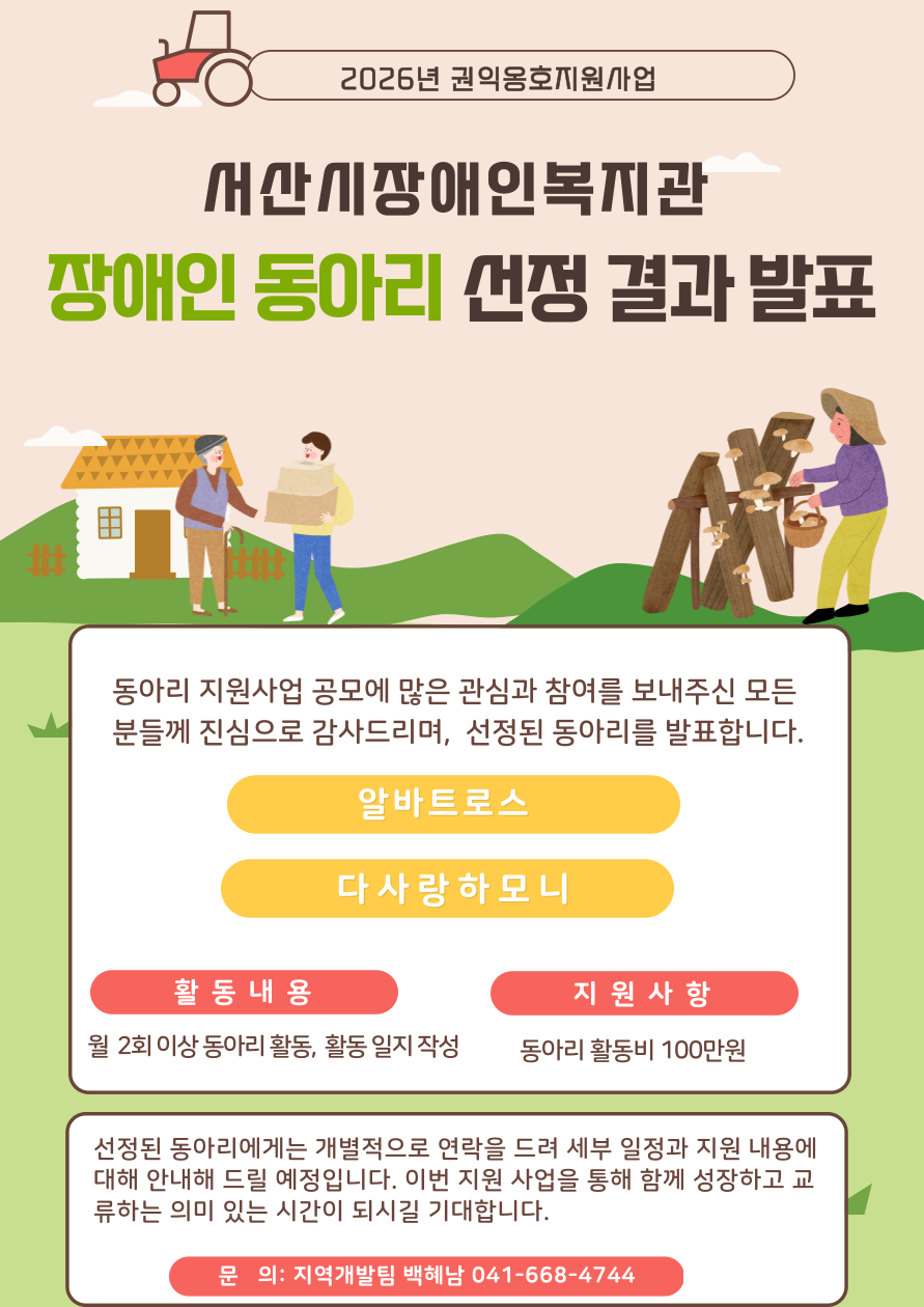 2026년 장애인 동아리 선정 결과를 발표합니다.
