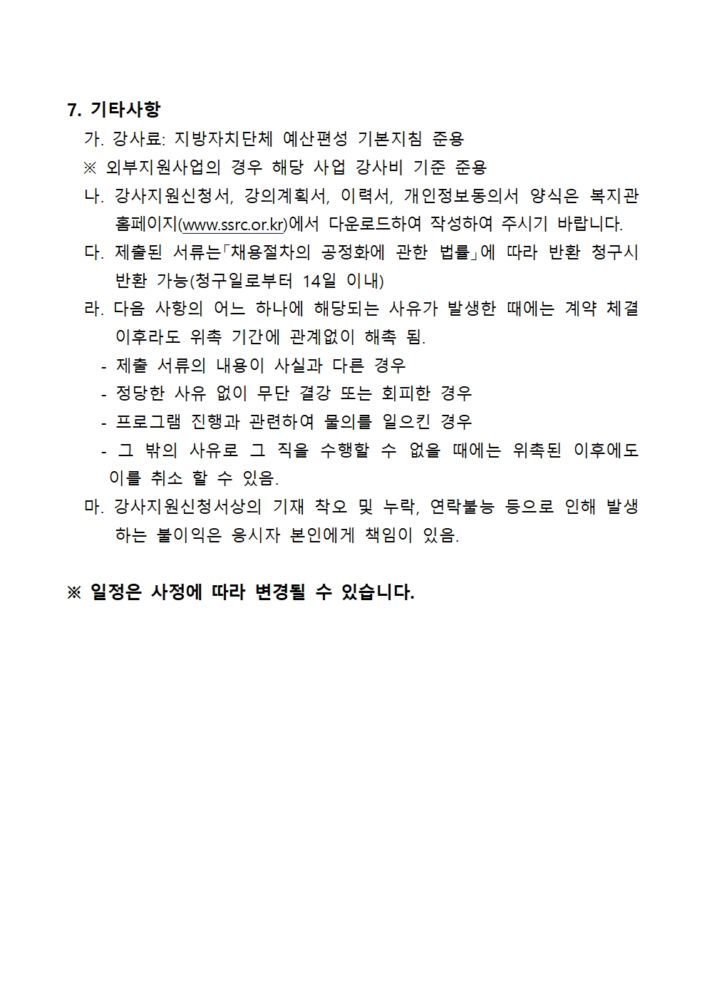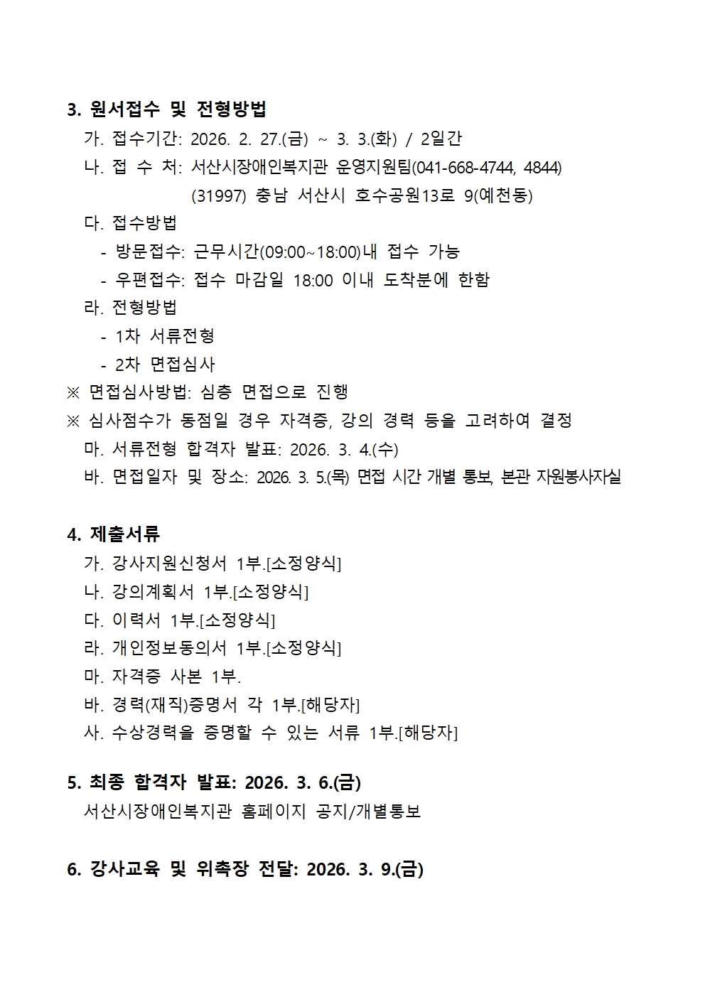 [공지] 서산시장애인복지관 강사 채용 공고