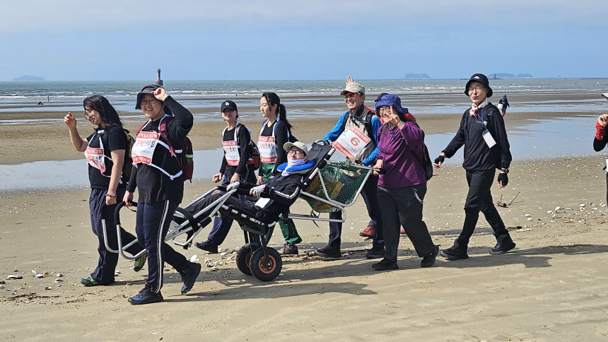 행사는 오전 10시 삼봉주차장에서 휠체어 점검과 안전교육으로 시작해, 조별로 삼봉해변~기지포해변 구간을 왕복하는 트레킹이 진행됐다. 이어 자연물을 활용한 손수건·에코백 만들기 체험과 참가자 소감 나누기 순으로 마무리되었다.