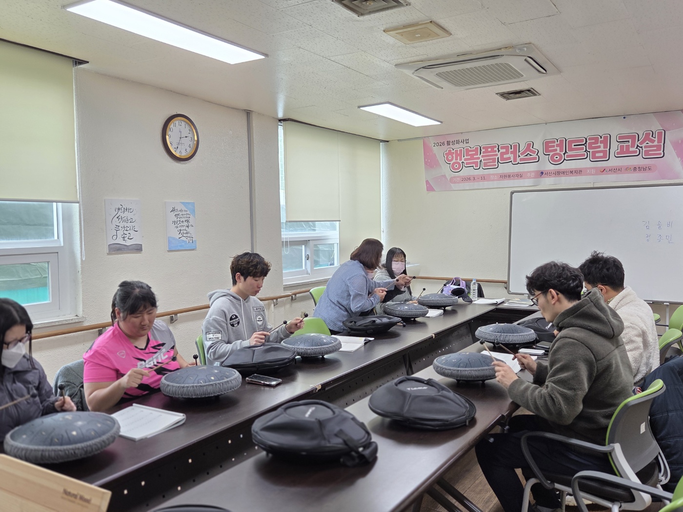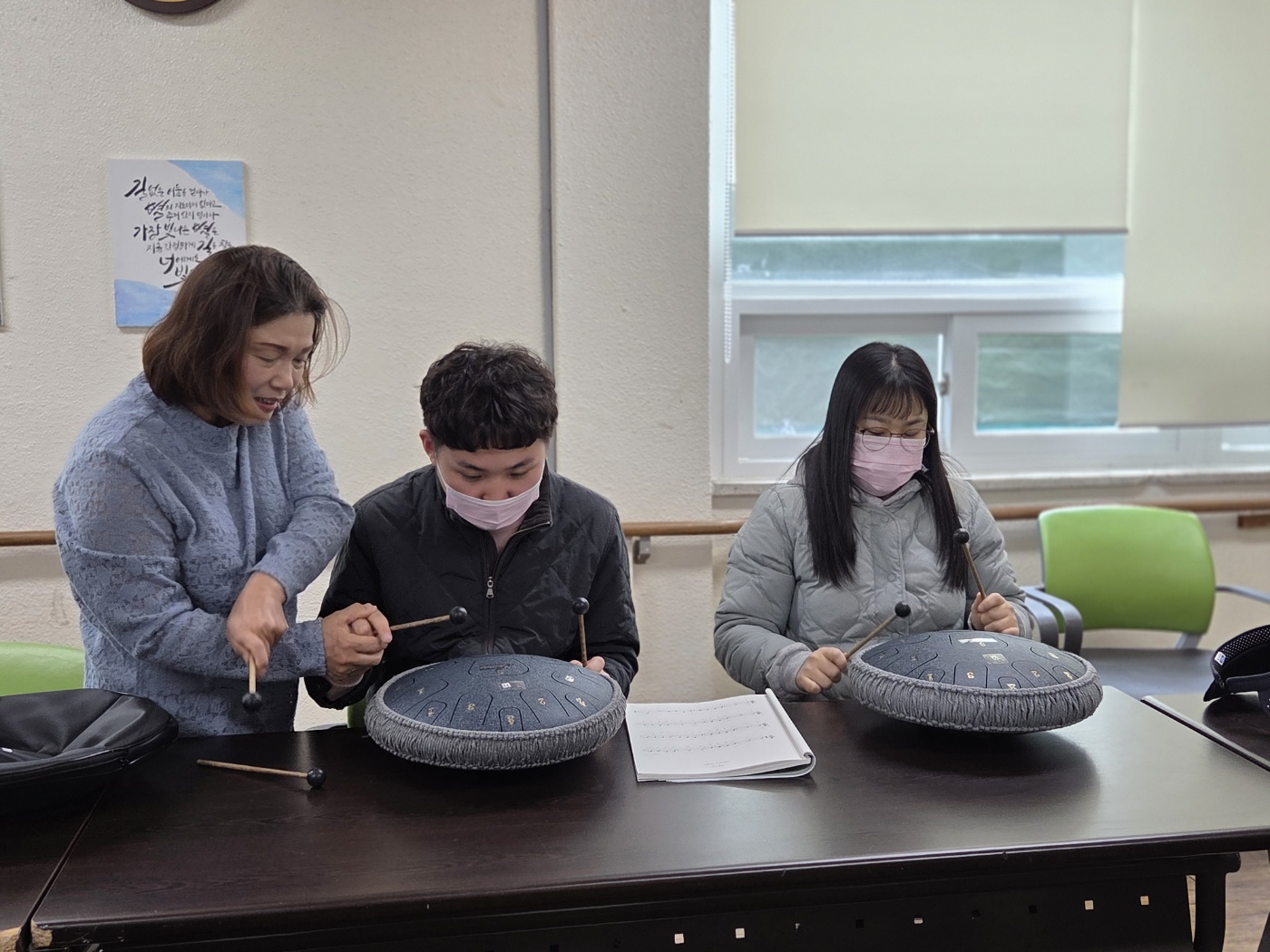2026년도 행복플러스 텅드럼 교실 개강 김태은 0 28 03.12 11:45 2026년 행복플러스-텅드럼 교실을 개강했습니다.^^매주 수요일 14:30 ~ 16:30, 8명의 성인장애인과 함께 총 25회기 동안 조인옥 음악강사님을 모시고 자원봉사자실에서 진행 될 텅드럼교실은맑고 부드러운 소리가 나는 악기인 텅드럼을 배우고 연주하며 음악적 즐거움을 느끼고 정서와 심리 안정을 느낄수 있는 프로그램입니다.참여자들이 음악을 통해 서로 소통하며 재능을 발휘할 수 있는 시간이 되길 기대합니다.