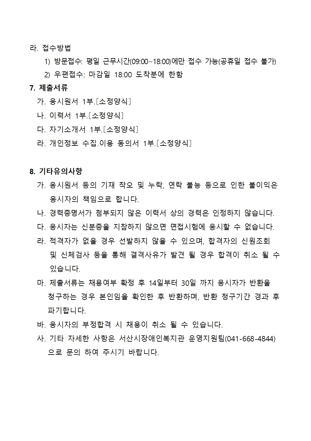[공지] 서산시장애인복지관 계약직 직원 응시원서 서류 양식