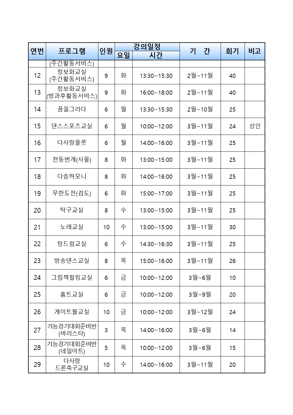 프로그램 대기자 현황
