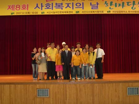 제8회 사회복지의날 행사 대상 수상 김경수 0 4347 2007.11.04 19:56 2007년 9월 13일 제8회 사회복지의날 행사에서 서산시장애인복지관 오카리나합주단이 대상의 영광을 안았습니다.