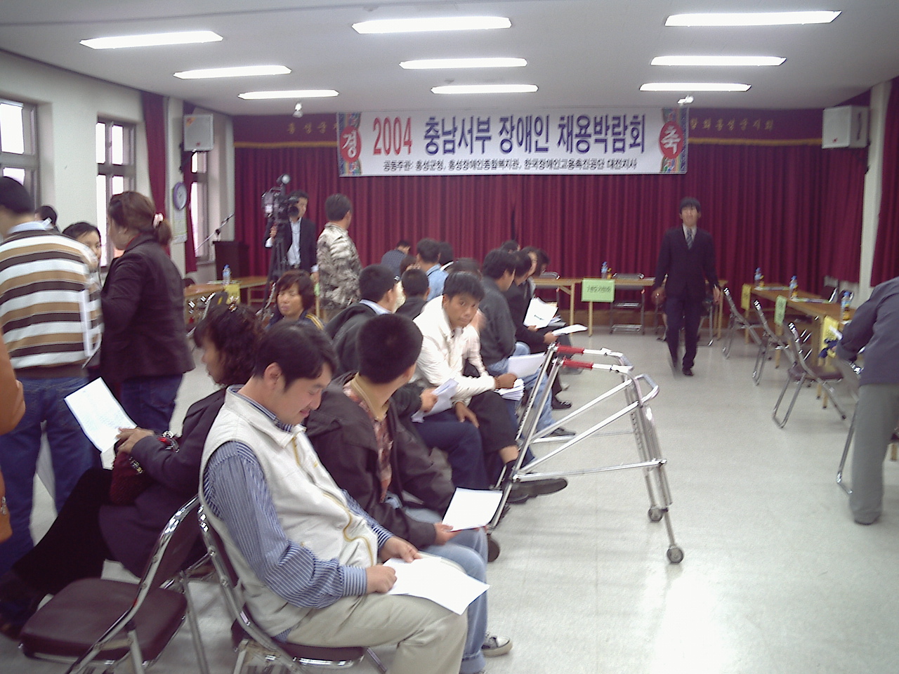 충남 서부장애인채용박람회 참석 탑새기 0 3770 2004.11.11 16:07 11월 10일(수) 홍성장애인복지관 강당에서 있었던 한국장애인고용촉진공단 대전지사주최 장애인채용박람회에 직업재활반이 참여하여 취업의 기회를 제공받았다. 이날 면접을 통하여 한일규ct가 (주) 정동에 취업되는 기회를 잡았다.