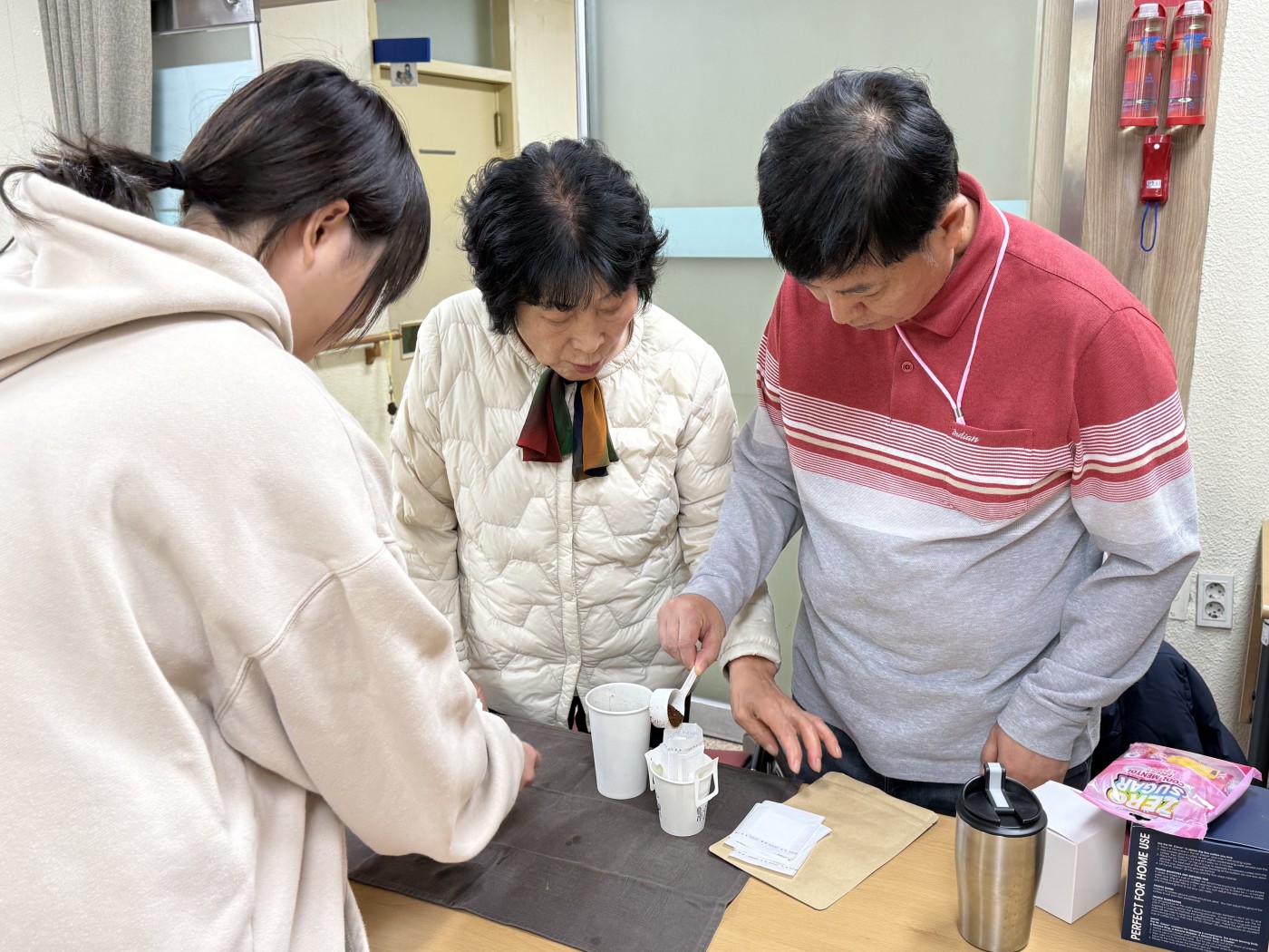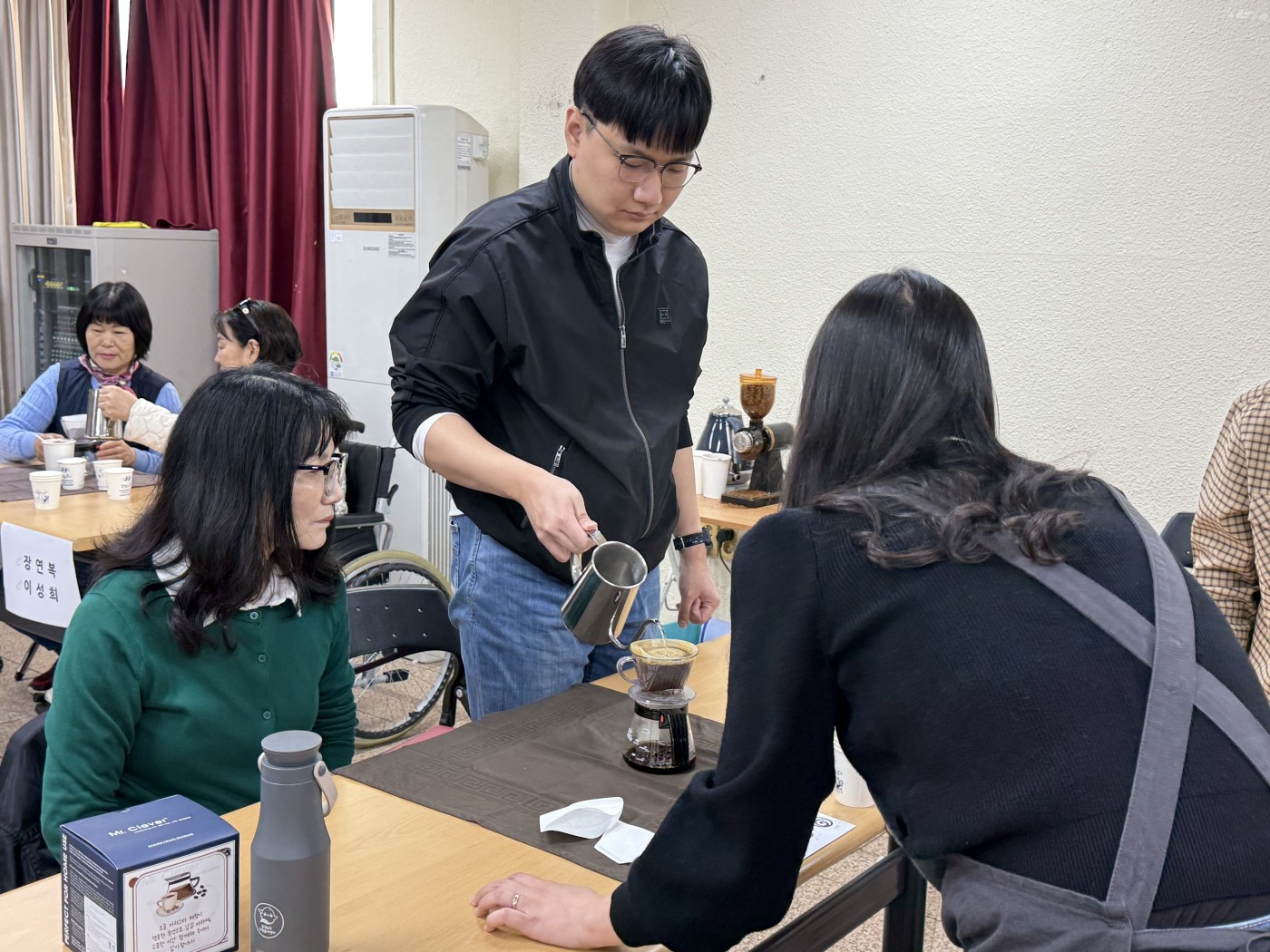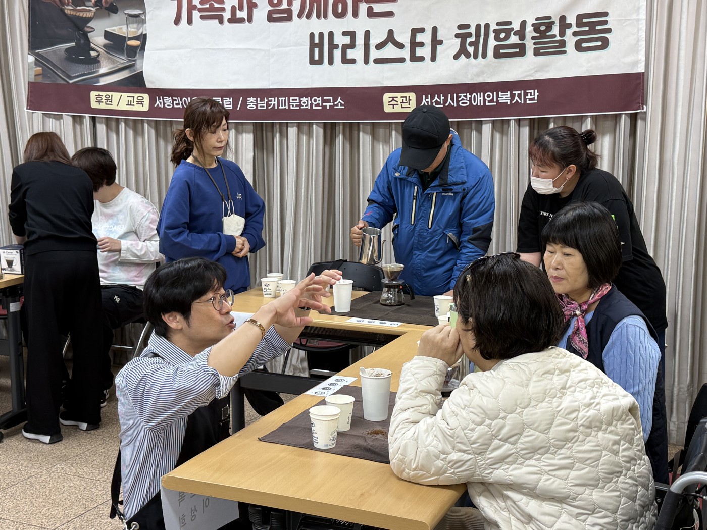 장애인가족바리스타체험활동 강은빛 0 296 2025.10.25 12:45 10월 25일 복지관 2층 강당에서 장애인 가족 8가정 20명을 대상으로 ‘장애인가족 바리스타 체험활동’을 진행하였습니다.충남커피문화연구소와 서령라이온스클럽의 후원과 재능기부로 마련되었으며, 커피를 매개로 장애인 가족들이 함께 소통하고 새로운 경험을 나누는 뜻깊은 시간이었습니다.