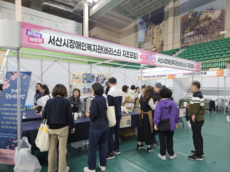 '서산시일자리박람회' 바리스타 자조모임 음료 부스 운영 강은빛 0 353 2025.10.15 14:09 10월 14일 서산시시민체육관에서 열린 ‘서산시 일자리박람회’ 현장에서, 서산시장애인복지관 바리스타 자조모임 참여자들이 직접 내린 드립커피와 다양한 음료를 제공하였습니다.바리스타 교육을 이수한 바리스타로 구성된 자조모임은 행사장에서 음료 부스를 운영하며, 참가자들과 시민들에게 따뜻한 커피 한 잔의 여유를 선사하였습니다.