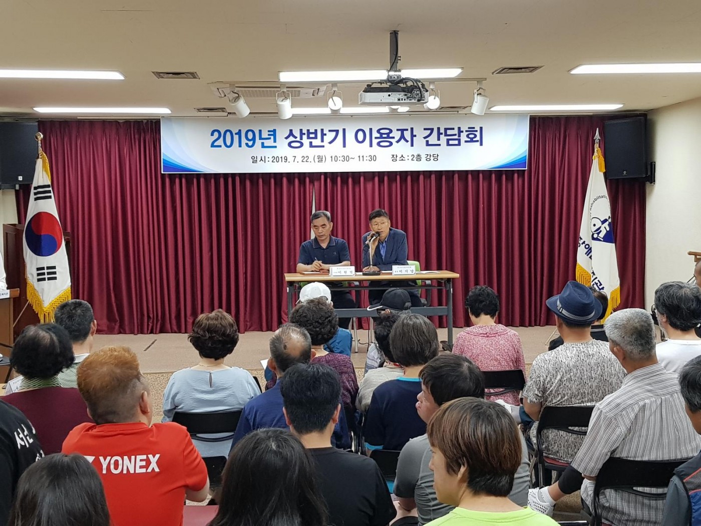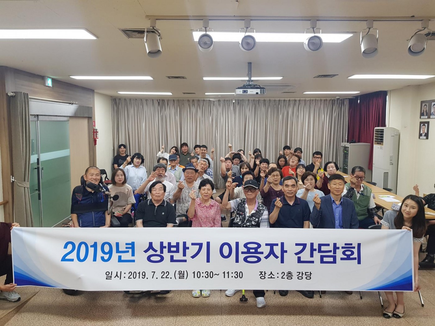 상반기 이용자 간담회 가윤선 0 2302 2019.07.25 14:13 상반기 이용자 간담회 7월 22일(월)에 이용자와 복지관이 함께 발전을 도모하기 위해 이용자 간담회를 실시하였습니다.이번 간담회를 통해 이용자들의 다양한 의견을 들을 수 있었고, 기관 운영에 적극 반영하기로 하였습니다.늘 복지관에 관심과 사랑을 아끼지 않는 이용자들에게 감사의 마음을 전하며, 장애인복지발전에 앞장서는 서산시장애인복지관이 되도록 노력하겠습니다.