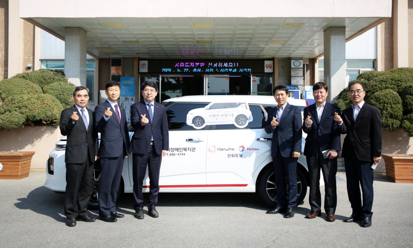 한화토탈, 사랑의 차량지원 가윤선 0 2193 2019.04.04 11:11 2019년 4월 4일 한화토탈(대표 권혁웅, 장막오테로델발)의 차량지원으로 서산시청에서 차량 전달식이 있었습니다.그동안 복지관은 노후된 차량과 소형차 부족으로 시골 곳곳을 방문함에 있어 많은 어려움을 겪고 있었는데, 이번 한화토탈의 차량지원으로 재가방문물리치료 및 장애인활동지원 방문상담 등 가가호호 방문하여 서비스를 제공함에 있어 활동성을 갖고 임할 수 있게 되었습니다.지역 장애인의 복지에 적극적인 관심과 사랑을 보내주시는 한화토탈에 감사의 마음을 전합니다.