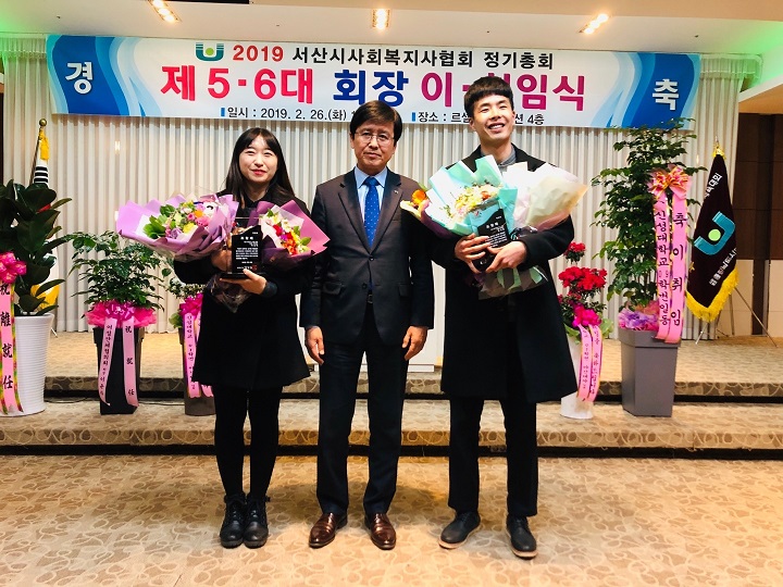 유선용 사회복지사 서산시장 표창패 수여 백혜남 0 2551 2019.02.27 19:19 유선용 사회복지사 서산시장 표창패 수여 2019. 2. 26.(화) 르셀웨딩컨벤션에서 열린 2019 서산시사회복지사협회 정기총회 제 5.6대 회장 이.취임식에서 유선용 사회복지사가 서산시장 표창패를 수여받았습니다. 이는 애향심과 봉사정신으로 지역사회 복지증진을 위해 노력한 공이 인정되어 받은 표창패입니다. 앞으로도 저희 직원들은 지역 장애인을 위해 지속적인 관심과 사랑으로 최선을 다해 업무에 임하겠습니다.다시 한번 축하드립니다.