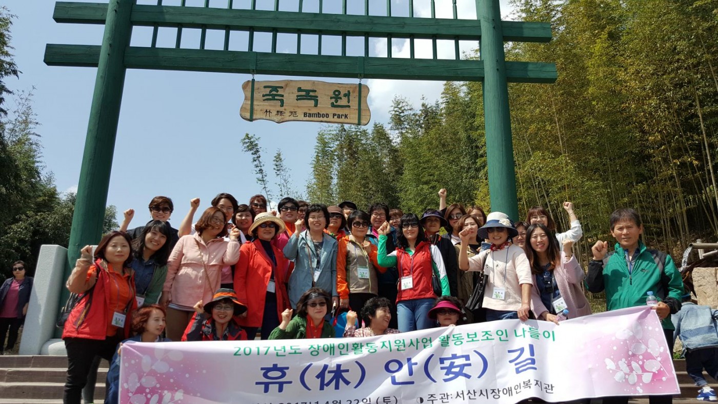 중증장애인 활동보조인 나들이 휴(休)안(安)길 박지애 0 3031 2017.04.24 14:29 4월 22일(토) 전남 담양(죽녹원 외)으로 중증장애인 활동보조인 나들이 및 화합대회 ‘휴(休)안(安)길’을 다녀왔습니다. 따뜻한 봄바람 속에 자연의 푸름과 꽃들의 향연을 만끽하며 그동안 중증장애 서비스로 지쳐있던 몸과 마음에 휴식을 취하고 새로운 마음가짐을 다지는 소중한 하루를 보냈습니다^^