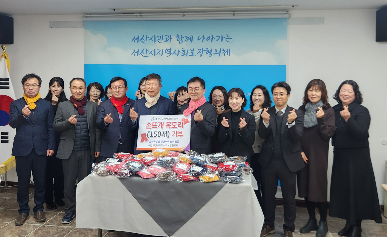 서산시장애인복지관 관계자는 “매년 잊지 않고 지역사회의 어려운 이웃을 위해 본인의 시간을 할애하여 정성껏 목도리를 만들어주시는 서산교육지원청 교직원분들께 깊은 감사를 드린다”며 “보내주신 따뜻한 마음이 우리 복지관 이용자들에게 큰 위로와 힘이 되었다”고 전했습니다.